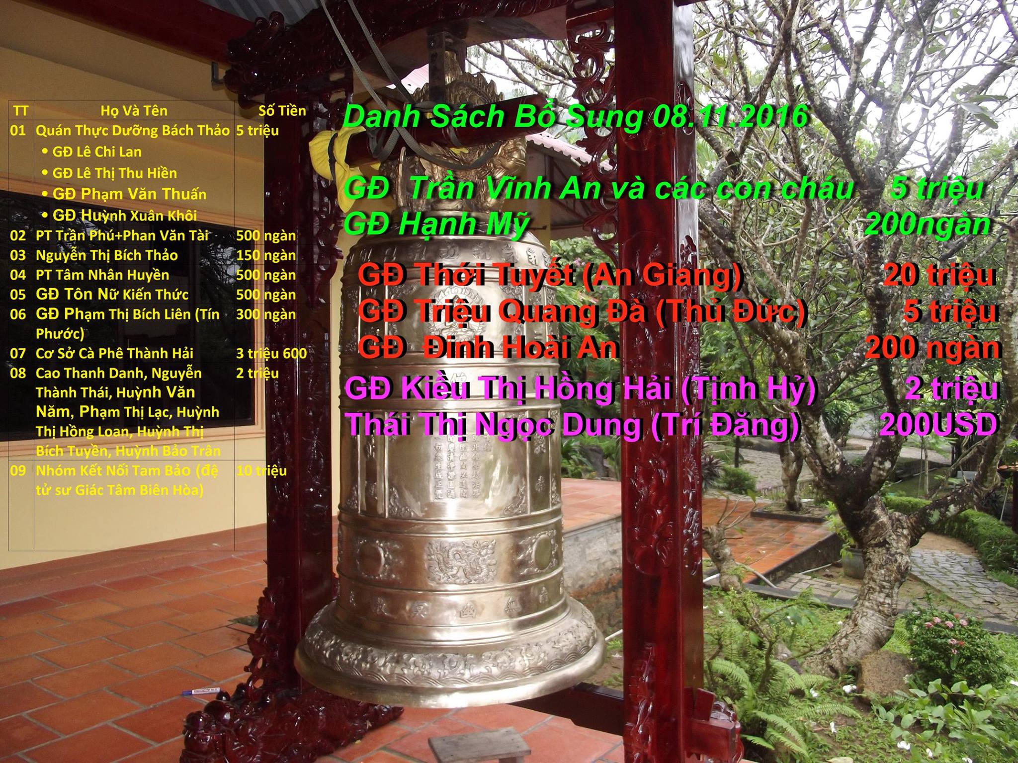Cập Nhật Danh Sách Hùn Phước Xây Dưng Kuti 29.05.2017